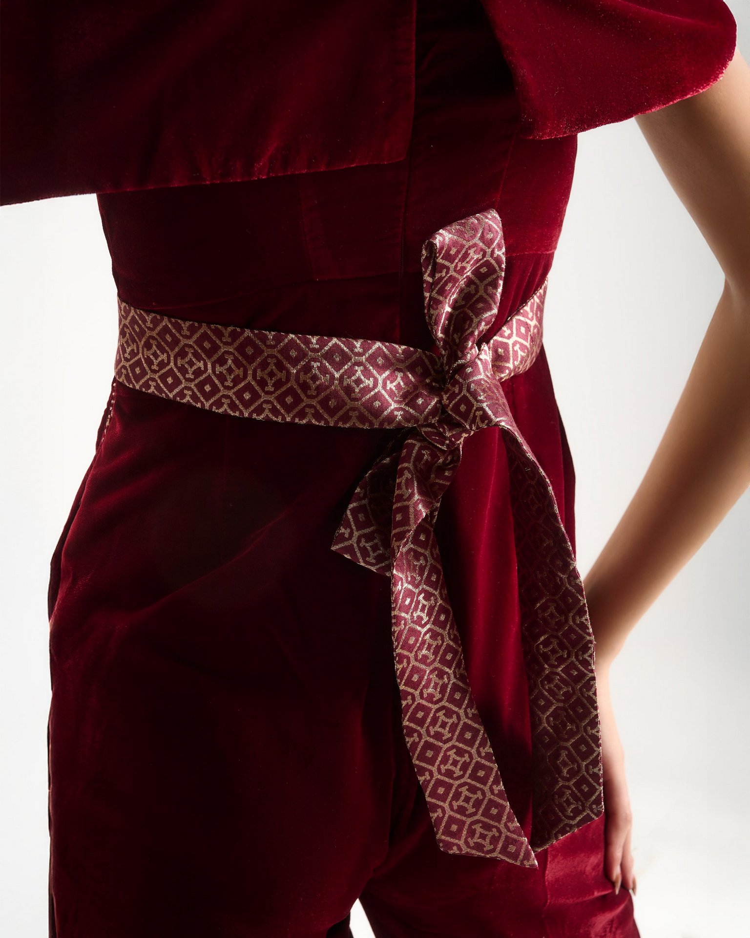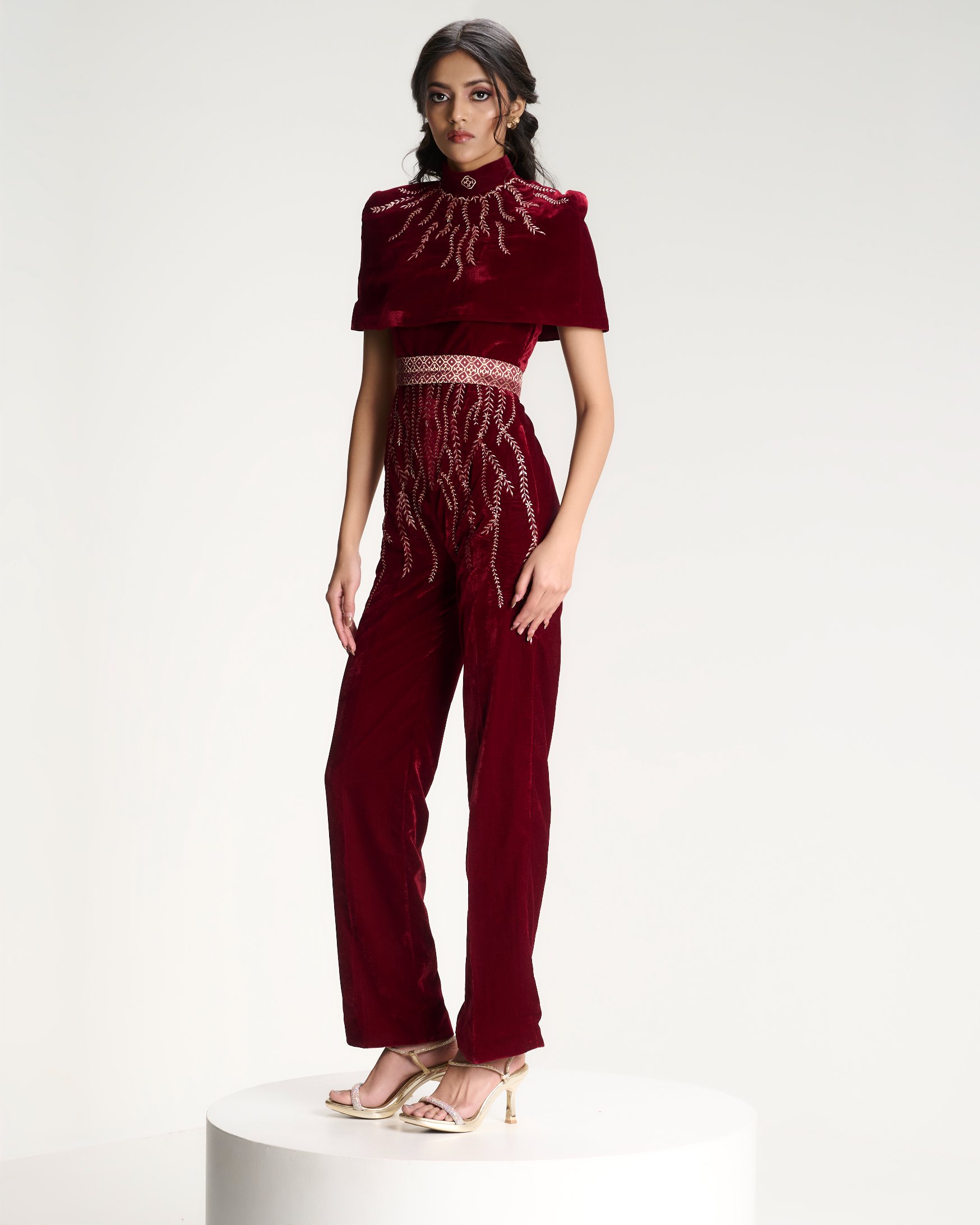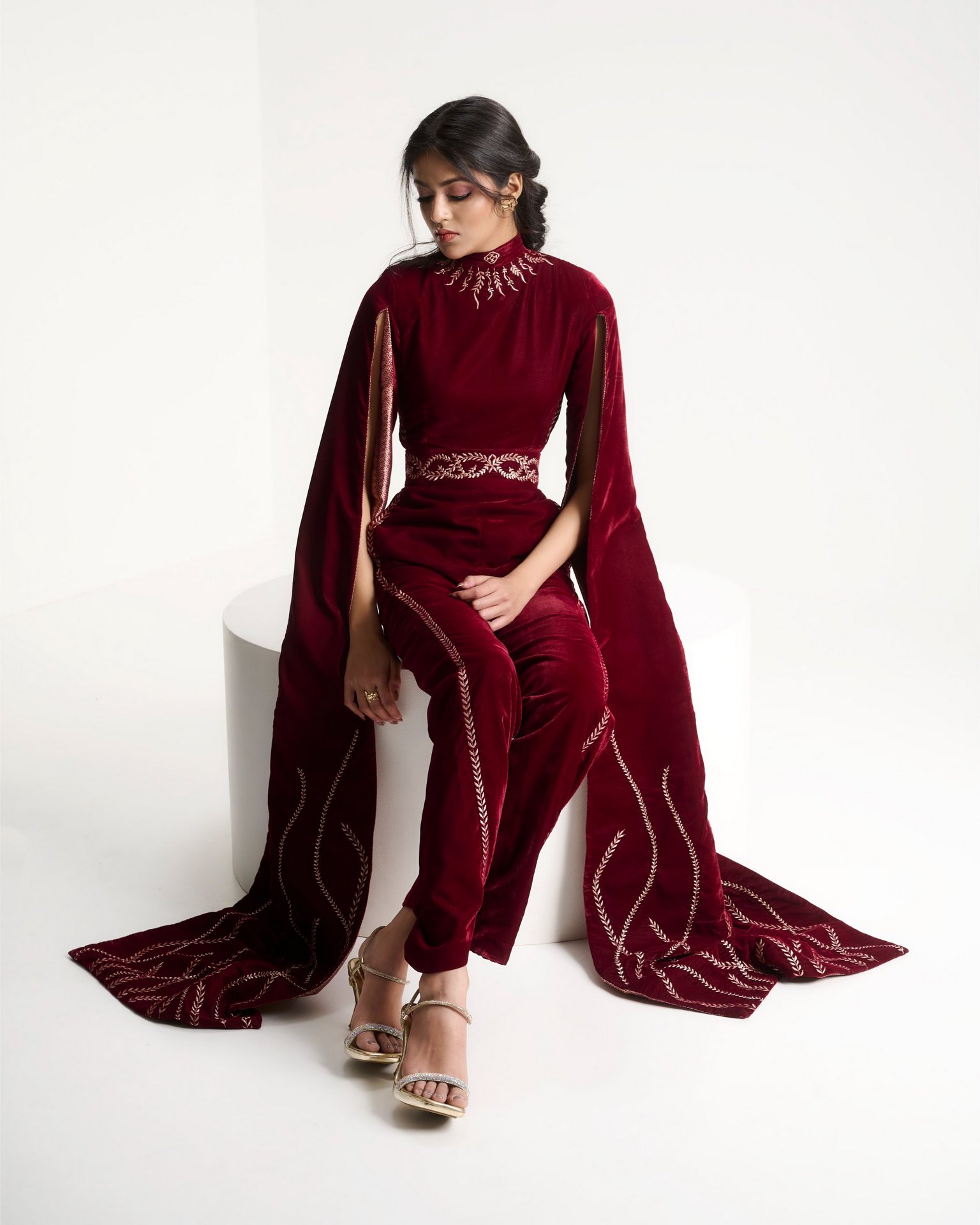 Banarasi zari meets sculpted velvet in a silhouette that balances heritage with modern form. Kailessa introduces the language of the house