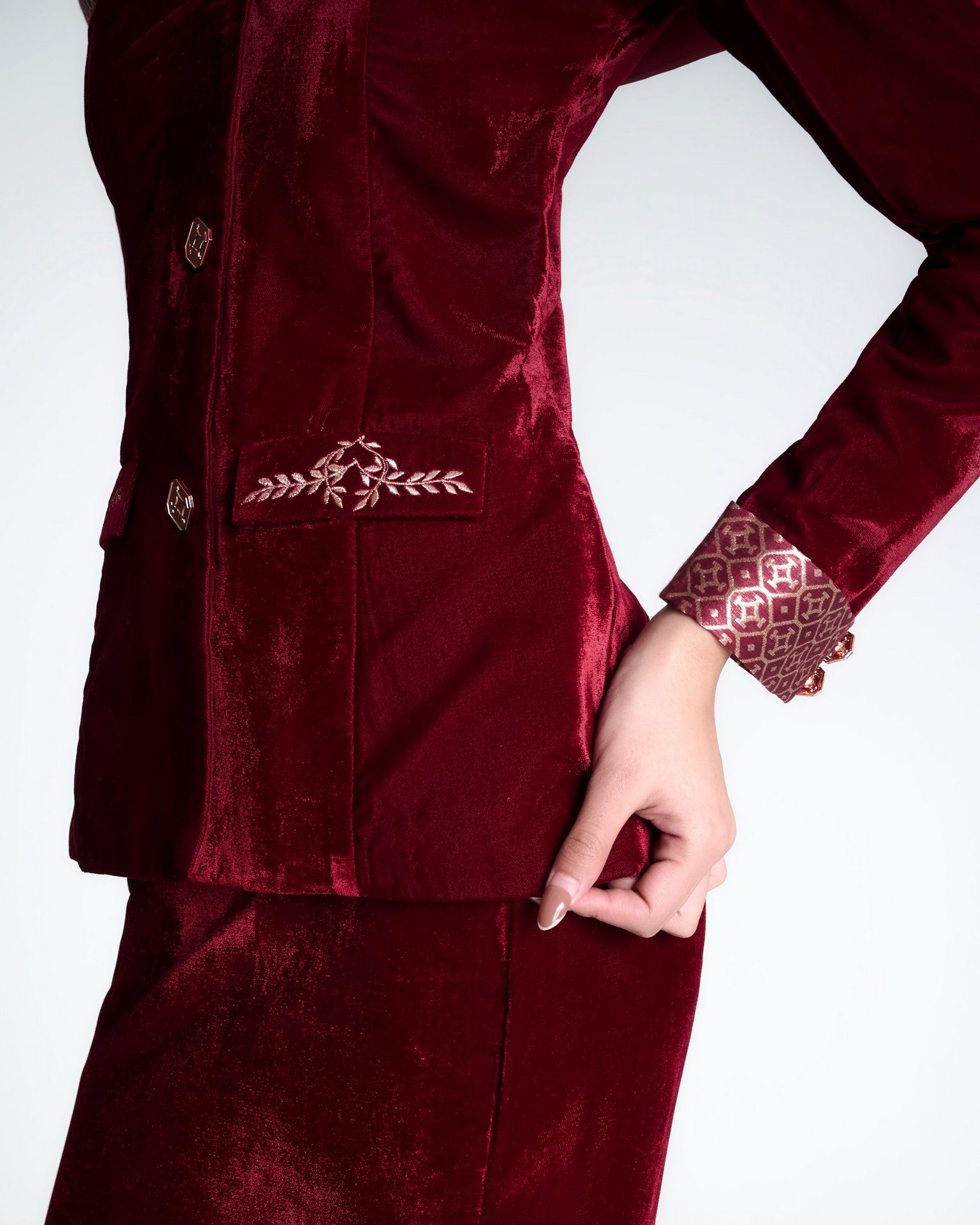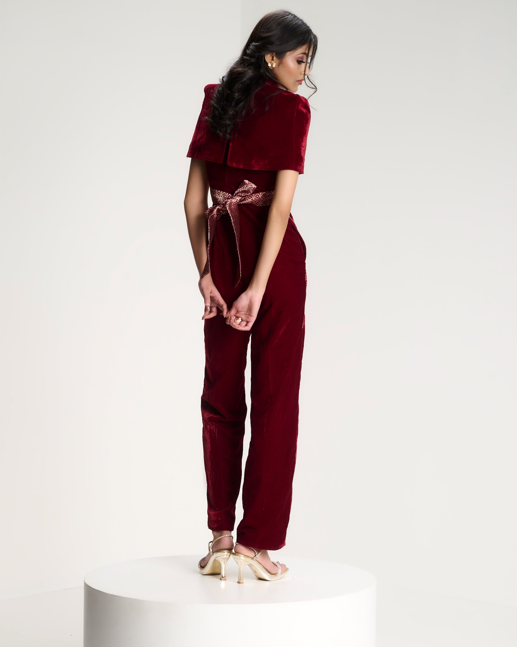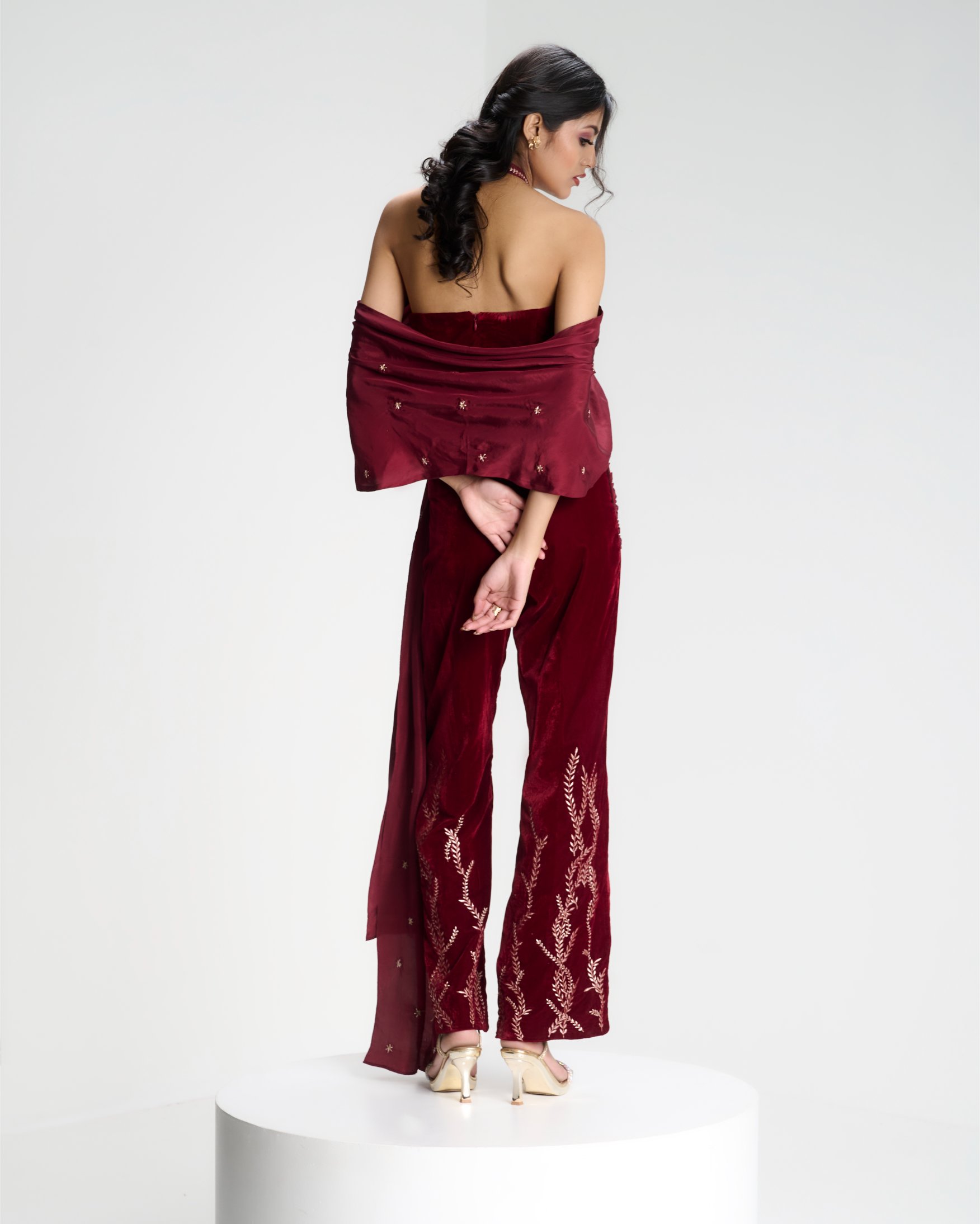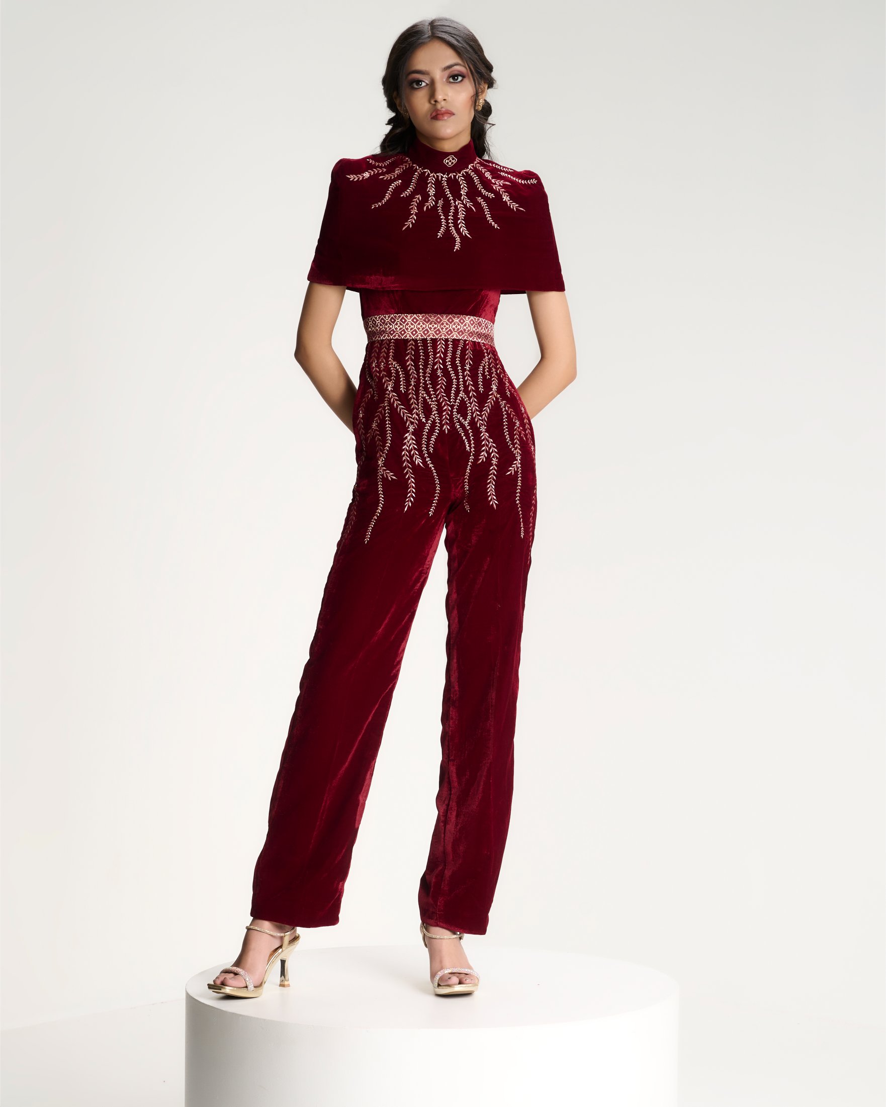 Banarasi zari meets sculpted velvet in a silhouette that balances heritage with modern form. Kailessa introduces the language of the house